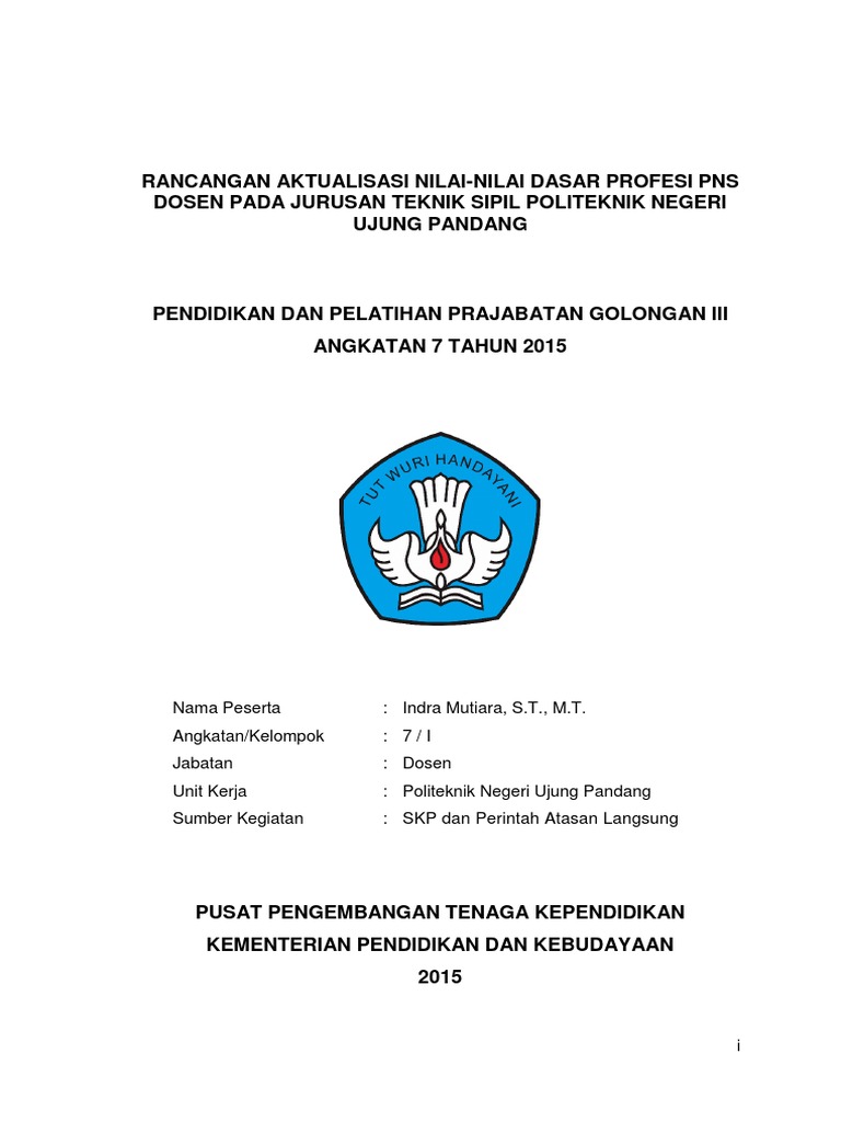 Pdf Laporan Aktualisasi Cpns Dpupr Mohamad Agus Faozan Academia Edu from 0.academia-photos.com Seluruh panitia penyelenggara pelatihan dasar cpns golongan ii pusdiklat pegawai kementerian pendidikan dan kebudayaan. Kementerian atr/bpn mengalokasikan sebanyak 727 kursi yang terdiri dari 11 formasi. Laporan aktualisasi afnan labib budi panular nip. Sebanyak 280 orang calon pegawai negeri sipil (cpns) kementerian atr/bpn gelombang i tahun 2018 dengan formasi. Latsar cpns gol ii angkatan ii kelas a tahun 2019. Calon pegawai negeri sipil d3 : Laporan aktualisasi cpns kementerian atr : Laporan rancangan aktualisasi latsar cpns casn forjab guru.