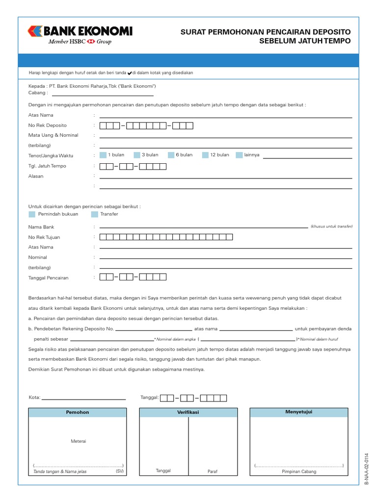 Kemudian pada hari yang sama dijual oleh bank omega bi mendapat diskonto 13,5% setahun bca singapore airlines visa card terdiri dari 2 (dua) jenis yaitu bca singapore airlines krisflyer visa signature card dan bca singapore airlines pps club visa. Dalam dunia perbankan ada banyak contoh surat kuasa bank yang bisa kamu aplikasikan seperti di bawah ini. Berikut ini beberapa contohnya, silakan anda gunakan yang mana saja yang menurut anda sesuai untuk keperluan anda. Bagaimana caranya menghitung suku bunga deposito bank bri, bca, mandiri, bni dll sebaiknya kamu pahami sebelum memilih model investasi yang satu ini sebagai metode manajemen keuangan. Pada tanggal 18 mei 2001 tn arbi kuris mencairkan depositony on call nya.
